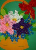 С ребятами, занимающимися в старшей группе, можно смастерить по такой методике «пушистые» гвоздики или веточки сирени.