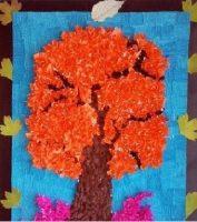 - Ориентируясь на веточки, приклеить цветные комочки.