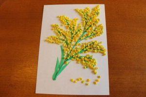 Аппликации из гофрированной бумаги “Веточка мимозы и сирене”