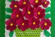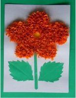 Цветы в стиле аппликации делаются не только из гофрированной цветной бумаги, но и из картона. Гофрированный картон придаёт объём и оригинальность аппликации. При этом работа с ним не требует особых навыков, поэтому с поделкой справятся даже детки в младшей группе.