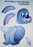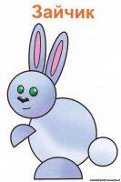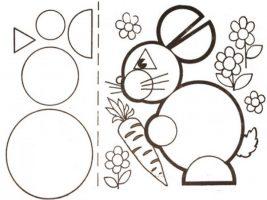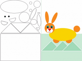 Такая аппликация рассчитана на детей младшего возраста. Когда они изучают фигуры и развивают память. Мы им показываем картинку, рассказываем как называются фигуры из которого можно сделать зайчика и предлогам им по памяти сложить своего героя.