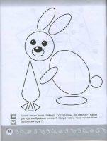 Из простых геометрических фигур можно также собрать и домик для зайчика.