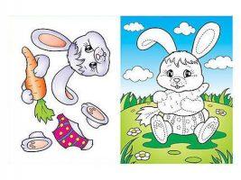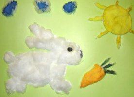 В средней группе и для детей постарше можно использовать не только готовые шаблоны, но и давать различные творческие задания – например, придумать аппликацию со зверями из подручных материалов. Это могут быть ватные диски, салфетки, обычная вата и еще множество других предметов и материалов. Самый простой вариант смастерить пушистого зайчика – обклеить рисунок ватой.