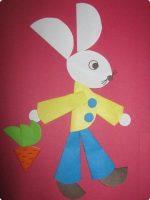 Для совсем маленьких дошкольников самым лучшим решением будет создать аппликацию из цветной бумаги. Например, заяц легко может получиться из геометрических фигур. Это позволит малышам узнать больше не только о животном мире, но и понять основы геометрии.