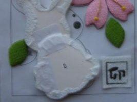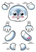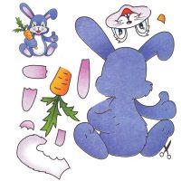 Далее все детали соединяются вместе, с задней стороны зайка укрепляется клеем и бумагой.