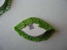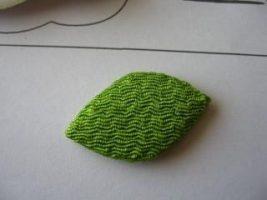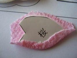 В некоторых случаях, когда контур детали сложный, на ткани необходимо делать дополнительные разрезы. На розовом лепестке ткань приклеена без надрезов и вытачек, на листиках уже с ними.