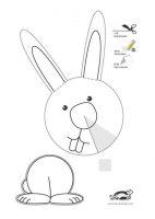Вот по такой простой схеме можно смастерить милого кролика или зайца из вырезанной по трафарету ладошки.