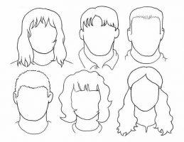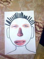 Например, причёску можно выложить гречневой крупой или составить из обведённых по контуру ладошек (схема представлена ниже). Кроме того, необязательно вырезать причёску полностью. Можно составить её из бумажных или картонных кругов, треугольников и просто обрывков бумаги.