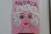 Пожалуй, один из самых сложных элементов портретной аппликации (и самых интересных!) – волосы. Идей создания причёски из различных материалов достаточно много. Для этого подойдут не только бумажные и картонные листы, но и нитки, пряжа, ленты, салфетки, ватные диски и многое другое.