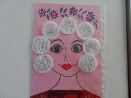 Пусть каждый воспитанник украсит свою маму по своему вкусу. Для этого можно использовать настоящие бусы и ткань.
