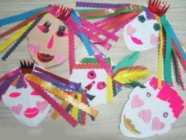 Ребята постарше могут попробовать сделать более подробную аппликацию из бумаги. Например, портрет мамы даёт больше полёта фантазии, ведь мамы любят менять причёски, украшать себя серьгами и бусами, носить яркие блузки.