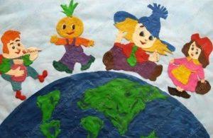 Изображение сказочного или вымышленного персонажа – хороший вариант для детской коллективной творческой работы в детском саду.