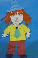 - Приклеить сверху лицо и закрыть шею воротником, приклеить галстук.