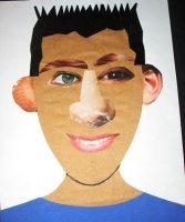 Подробная аппликация автопортрета делается из отдельно вырезанных элементов. Каждый воспитанник вырезает «свои» губы, брови, глаза, нос. С такой работой справятся дети старшего возраста – 6-7 лет.