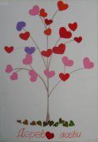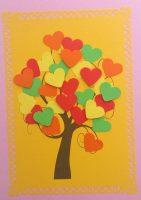 В детском саду в подготовительной группе можно собрать аппликацию с сердечками в виде дерева. Такие работы не сложные в выполнении, а выглядят очень красиво. Дети любят вырезать сердечки, поэтому сложностей не должно возникнуть.