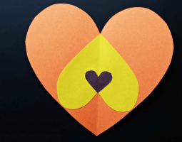 Если взять двойной листок, то это станет оригинальной открыткой-валентинкой: