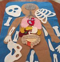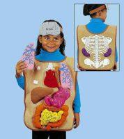 Для наглядного изучения анатомии человека и чтобы малыши, лучше усвоили знания по анатомии, рекомендуем сделать по размеру “накидку-фартук”. На ней органы крепятся при помощи липкой ленты. Органы подписаны, но это подайдёт для детей, которые уже могут читать.