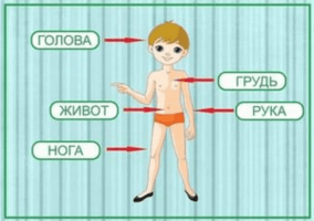 Если малыш уже знает названия. Можно предложить собрать самому человечка по частям.