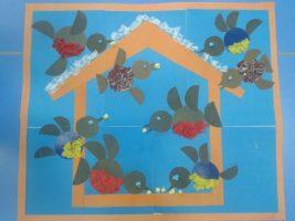 Отличная идея для коллективной работы: составить большую аппликацию птичьего двора. Чтобы работа получилась более интересной, рекомендуется использовать самые разнообразные материалы вместе.
