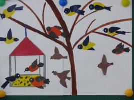 Не стоит забывать о зимних гостях – синицах и снегирях. Их легко сделать из подходящих материалов, например, из бумаги и ватных дисков. С такой работой справятся ребята в старшей группе.