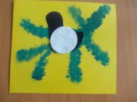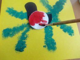 - сверху приклеить ватный диск и раскрасить его красной краской (получилась грудка);