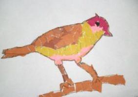 Синичек и снегирей, сидящих на ветках, можно изображать и другими способами. Например, с помощью такой техники как отрывная аппликация. Из названия понятно, что картинка в этом случае собирается из разноцветных кусочков бумаги. Такой способ аппликации требует усидчивости, терпения и развитой мелкой моторики, поэтому работу можно выполнить с детьми в подготовительной группе.