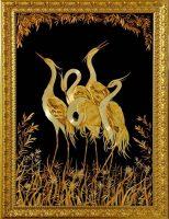 - приклеить птичек косяком к подготовленному фону.