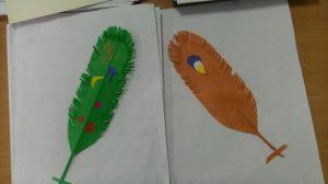 - подготовить все цветные элементы: вырезать пёрышки, скрутить комочки из салфеток, сделать с помощью дырокола конфетти;