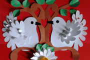 Приклеивать вырезанных птиц можно полностью или только одной стороной. Во втором случае получится объёмная аппликация.