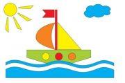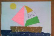 Детишек в младшей группе легко заинтересовать такой необычной игрой: каждый из ребят самостоятельно изготавливает кораблик-аппликацию, а потом все работы соединяются вместе в одно большое панно.