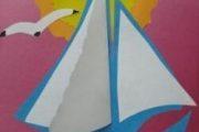 В этой работе треугольный парус получил выгнутую форму с помощью подкручивания обычным карандашом: