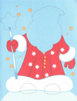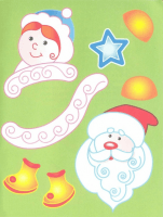 - У Деда Мороза же появляются глаза, красный нос, усы, борода, шапка и варежки.