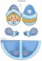 - Снегурочка приобрела глаза, косы, кокошник, бантики и рукавички.