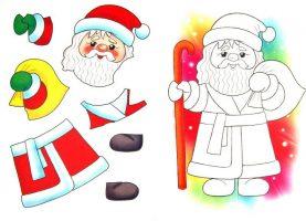 На картинках ниже вы можете найти несколько простых схем по склеиванию аппликаций с Дедом Морозом, которые подойдут для детей младшего школьного возраста: