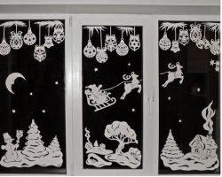В последнее время украшать окна, двери своего жилища банальными бумажными снежинками стало не модно. На смену им пришли различные картинки новогодней тематики, вырезанные в технике бумажной резьбы.