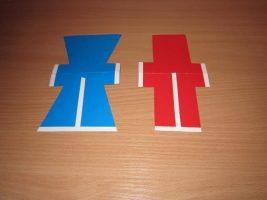 - Приклеиваем к одежке окантовку. Затем клеим головы.