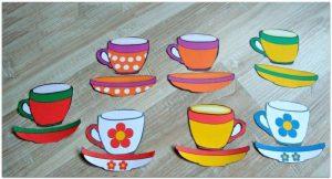 - Дайте детям выбрать цвет для чашки, раскрасить их, вырезать и приклеить.