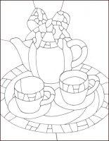 Чтобы сделать такое чудо своими руками, возьмите картон, клей, цветную бумагу и ножницы. Сначала нужно распечатать трафарет, на который будет наклеиваться сервиз, и подготовить детали из цветной бумаги – нарисовать чашки, ложки, чайник с заварником, по контуру вырезать их.