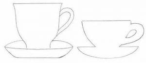 - Сложите чашечку пополам, и согните заготовку по двум линиями, чтобы получилось блюдце. У вас получилась красивая аппликация – чашка на блюдечке.