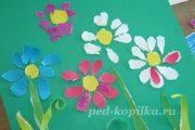 Такой простой поэтапный МК, при желании, можно использовать даже в средней группе. Главное – давать ребятам четкие пошаговые инструкции. Можно заранее подготовить трафареты, которые будут для детей своеобразной отправной точкой. И тогда эта аппликация на тему лета получится у каждого малыша.
