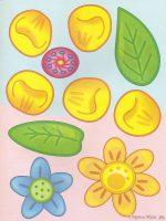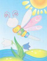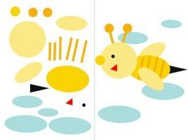 Следующим пунктом будет вырезание цветов и бабочек из цветной бумаги. Также подготовьте солнышко и облачка. Эти составляющие лета можно как распечатать, так и вырезать по собственным шаблонам. Тут все зависит от Вашей фантазии. Можно добавить и другие летние элементы природы. Аппликация на картинке, например, украшена пчелками. Готовые детали ребята могут приклеить на фон.