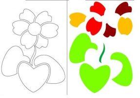 - В качестве стебелька для цветочка можно использовать обычный узкий прямоугольник, сложенный вдвое вдоль. А травкой будет гармошка из зеленой бумаги.