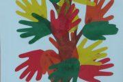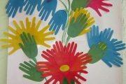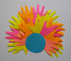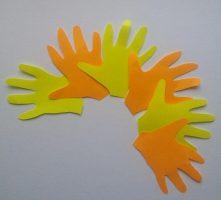 Их можно сделать из цветной бумаги или сделать отпечатки ладошек красками и вырезать по контуру.