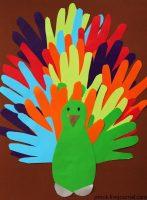 Разноцветный павлин готов. Самому выполнить из ладошек аппликации совсем легко.