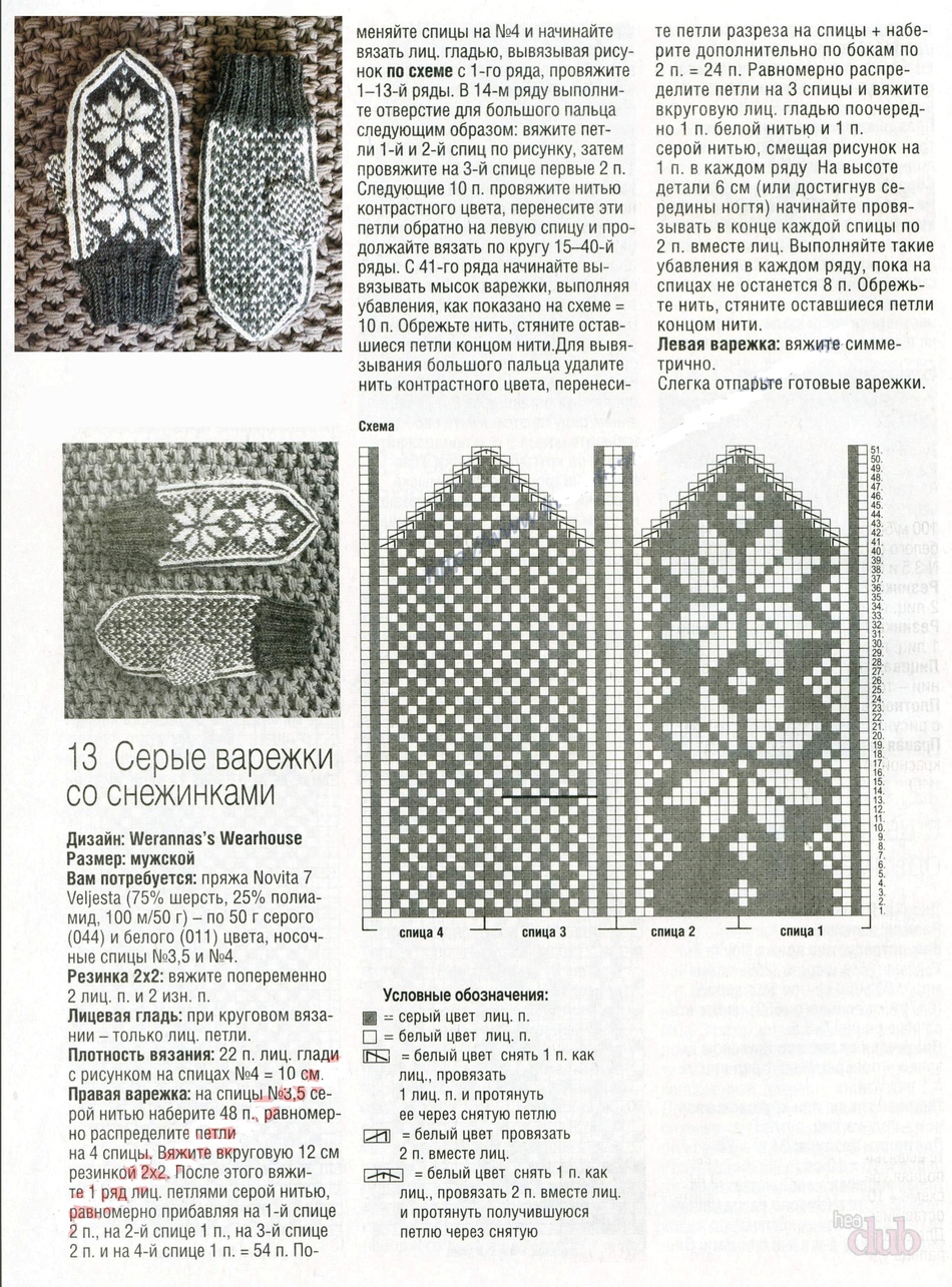 для левой варежки на 1-й и 2-й С вяжем ладонную часть, на 3-й и 4-й – тыльную.