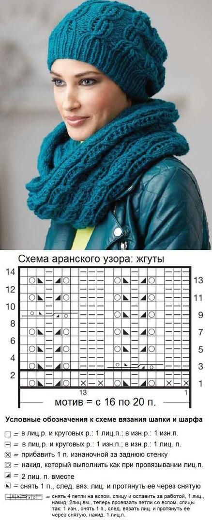 Рельефный и очень красивый узор для теплого снуда. Можно связать изделие таким рисунком полностью или использовать его как мотив.
