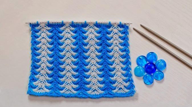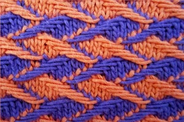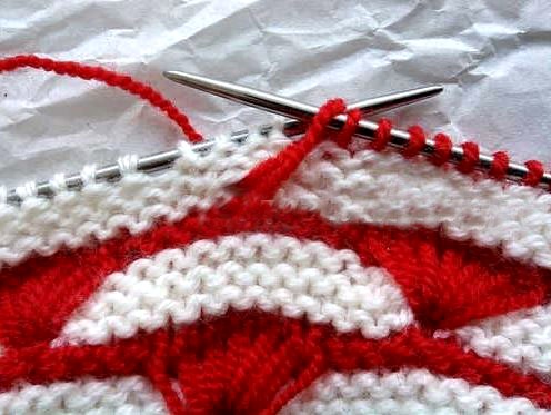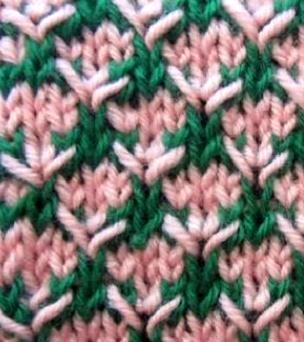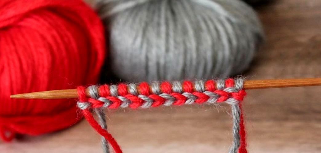 Двухцветный узор спицами со снятыми петлями: видео МК