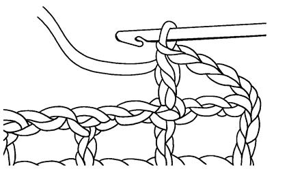 Чтобы прибавить одну заполненную клеточку в начале рядка, вывязываем 5 в. п. п. и вяжем с. с н. в следующую петельку и с. с н. в крайний столбик нижнего рядка.