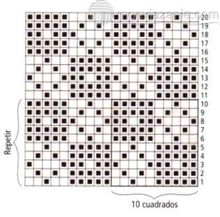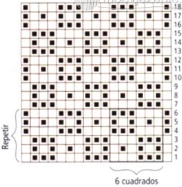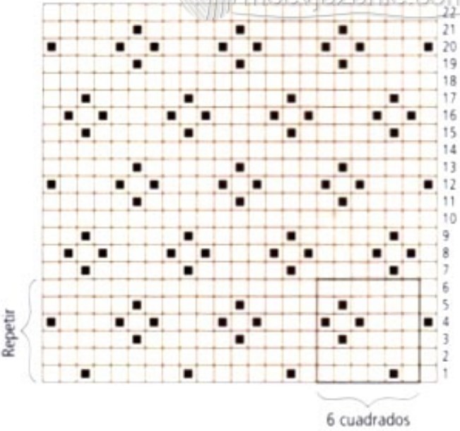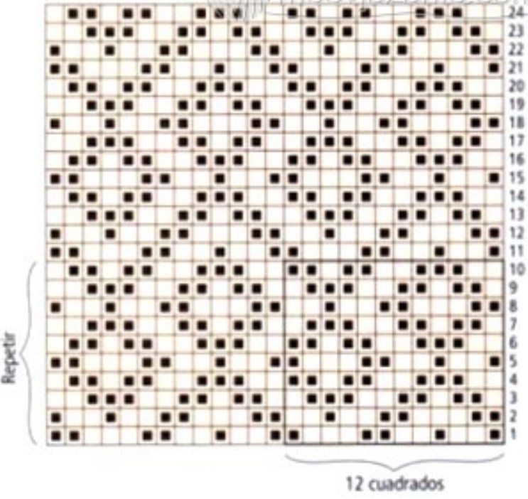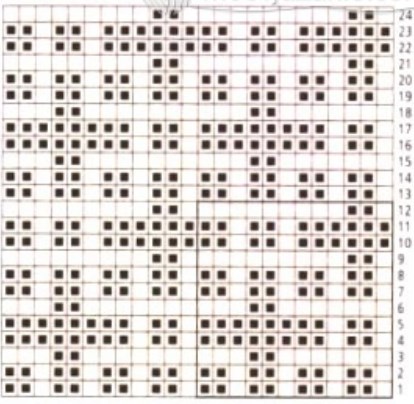 - 1 р.: 2 в. п., 1 с. с н., 2 в. п., *4 с. с н., 2 в. п., 1 с. с н., 2 в. п., 1 с. с н., 2 в. п., 1 с. с н., 2 в. п., 1 с. с н., 2 в. п., 1 с. с н.*, от * до * еще х 2, 4 с. с н., 2 в. п., 1 с. с н., 2 в. п., 1 с. с н.