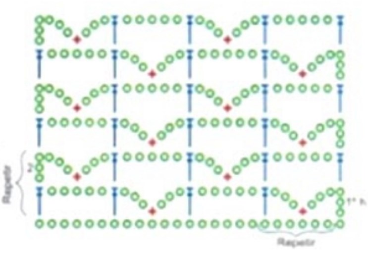 - 15 р.: 3 в. п., 1 с. с н., 2 в. п., 3 с. с н., 2 в. п., 5 с. с н., 2 в. п., 3 с. с н., 2 в. п., 3 с. с н., 2 в. п., 3 с. с н., 2 в. п., 3 с. с н.